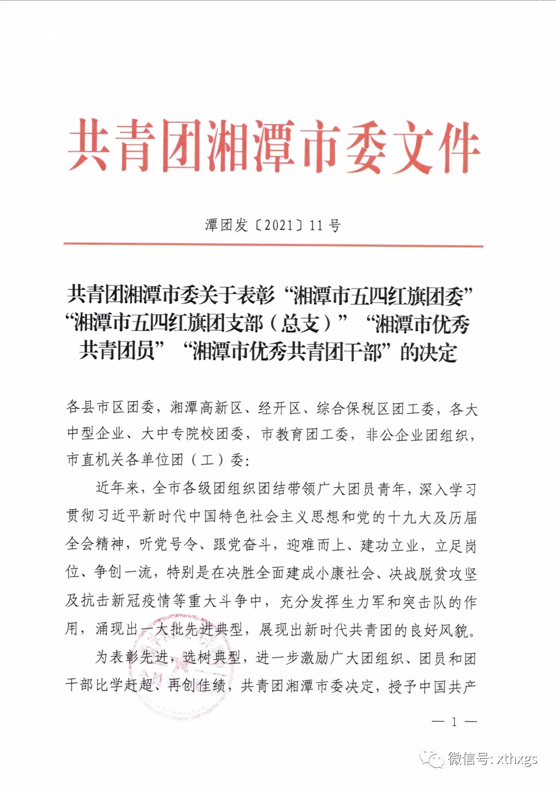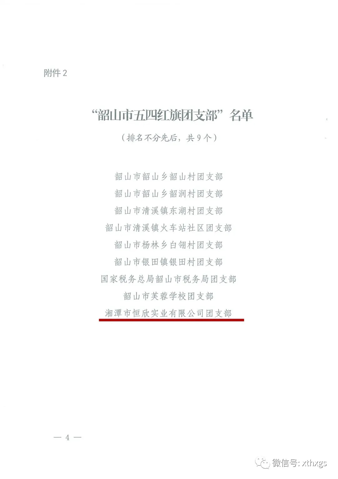 【湘潭恒欣】团支部被评为"韶山市五四红旗团支部"
