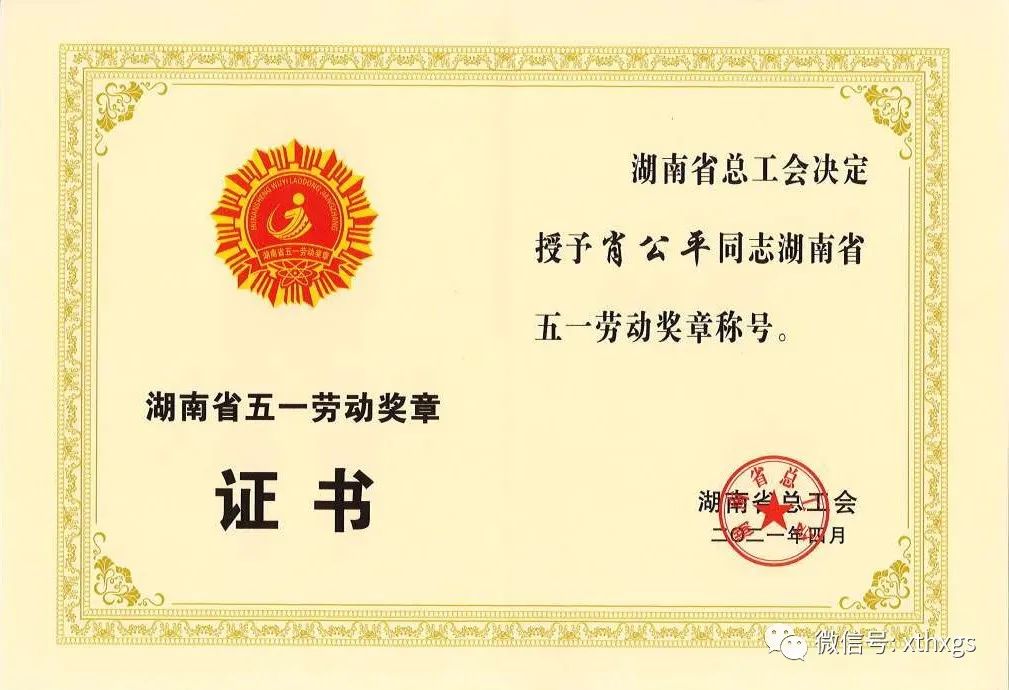 【湘潭恒欣】董事长肖公平荣获省“五一”劳动奖章。