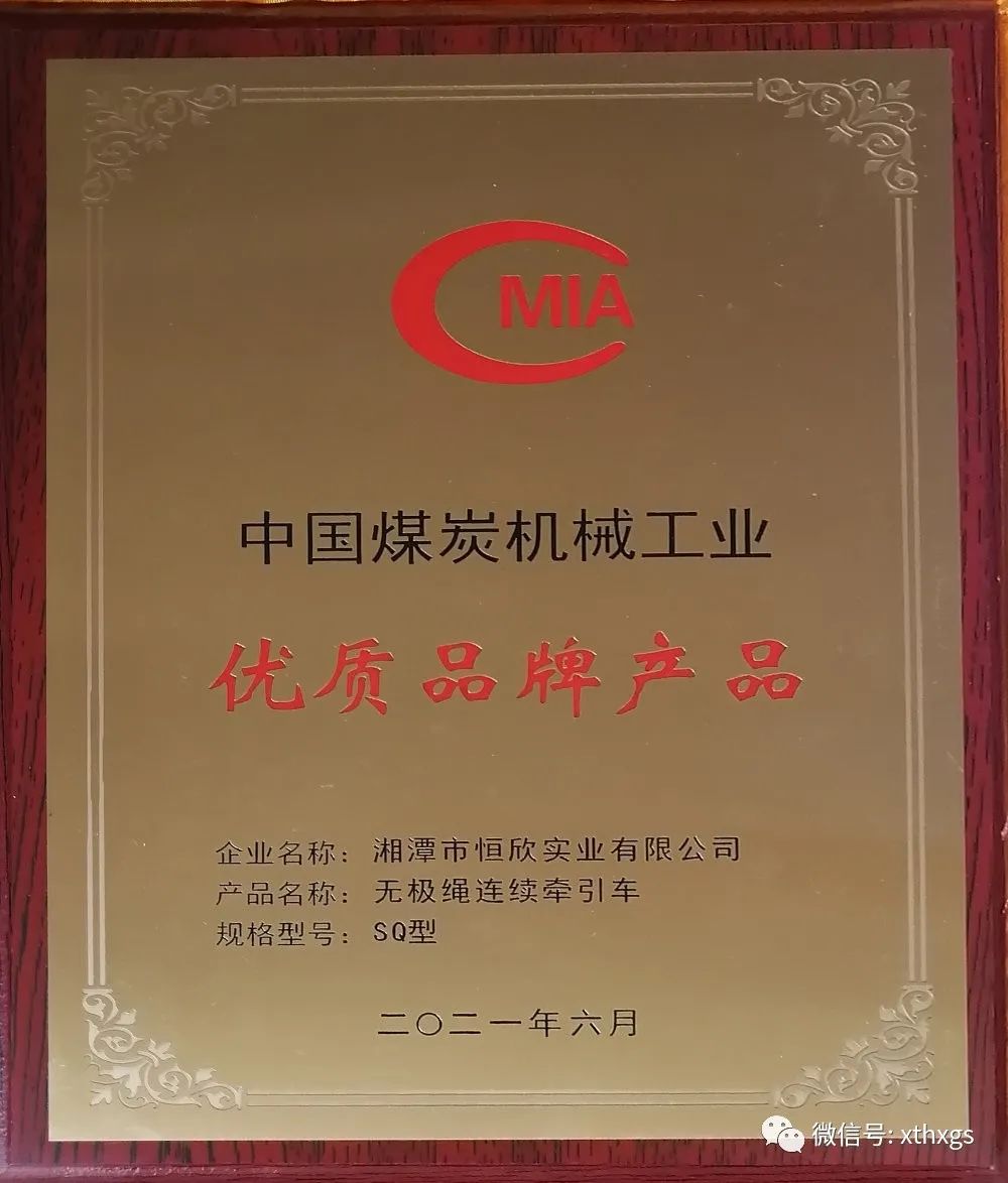 【湘潭恒欣】的“无极绳”产品荣获了中国煤炭机械工业协会【优质品牌产品】。该荣誉是经过协会专家对产品技术水平、市场占有率、企业利税、质量管理保障、生产条件和售后服务等方面进行综合评价,在众多产品中脱颖而出。