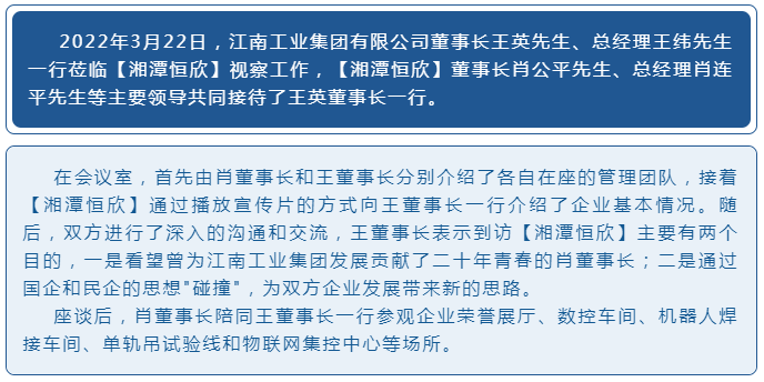 【江南工业集团】莅临【湘潭恒欣】视察和交流