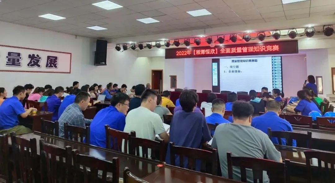 为提升全员质量意识,在第45个全国“质量月”活动期间,【湘潭恒欣】于9月24日下午,由工会和质量管理部共同组织的全面质量管理知识竞赛抢答活动在三楼大会堂举行。