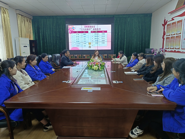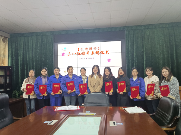 3月7日下午,由【恒欣股份】妇联组织的“三八红旗手”表彰会议在公司党建室举行,会议由【恒欣股份】妇联主席胡丹主持,总经理肖薇、工会主席、妇联副主席和兼职副主席以及受表彰的11名“三八红旗手”等人员参会。
