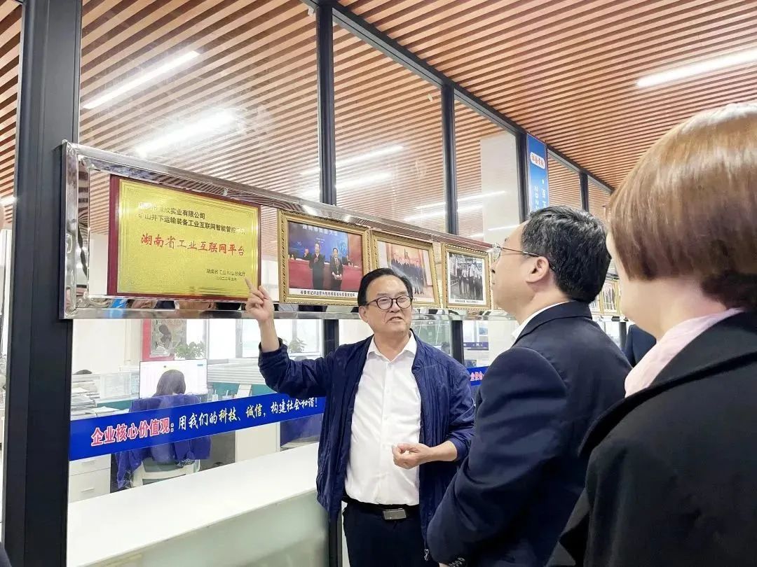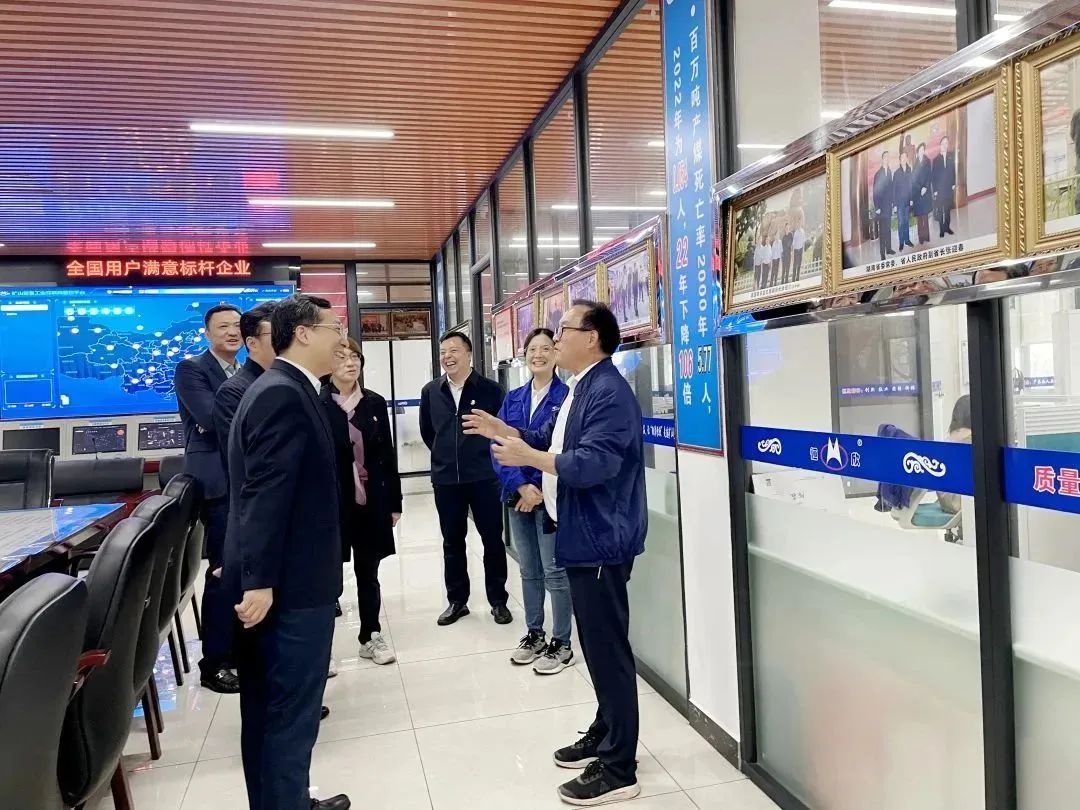 肖董事长陪同杨行长一行先后参观了【恒欣股份】荣誉展厅、矿用单轨吊试验区、技术研发中心、工业互联网管控中心等区域,参观过程中肖董事长向杨行长一行介绍了公司的发展历程、业务布局、经营业绩以及未来发展规划。