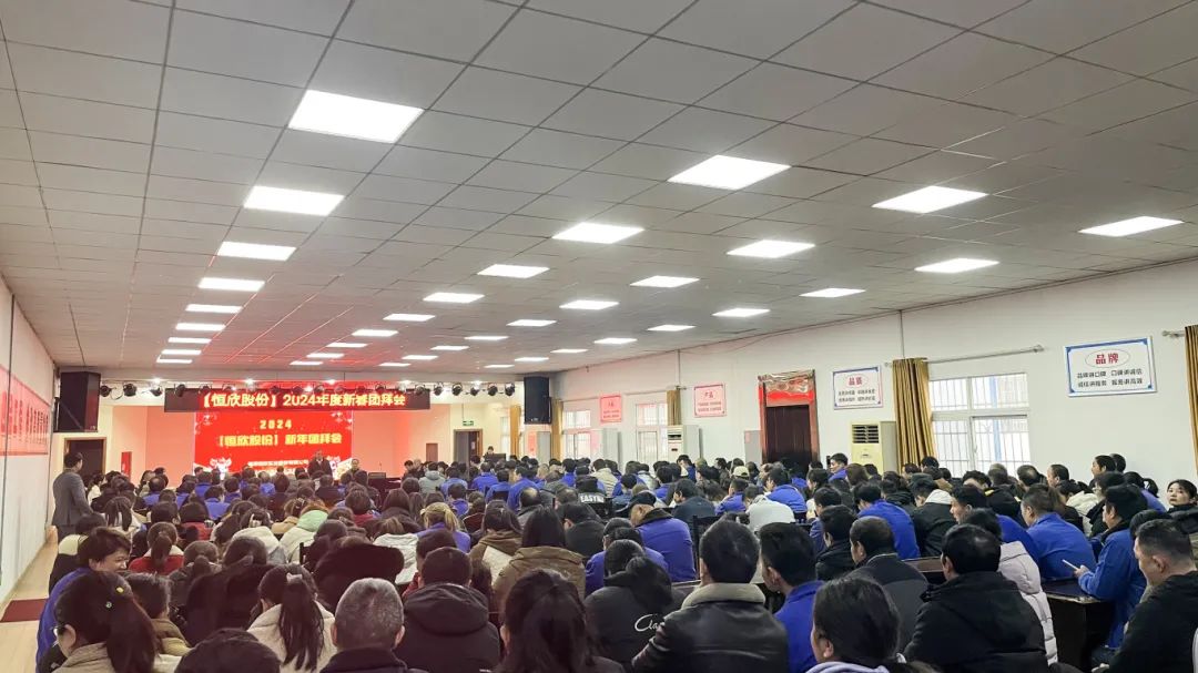 团拜会上,董事长肖公平致新春贺词,向全体员工致以节日问候和美好祝福。肖董事长表示,回首过去2023年我们收获了累累硕果,希望2024年新的征程,能够收获更美好的未来。在春节期间,为客户保履约,依然坚守在岗位上的员工表示钦佩,他们肩扛责任担当,解客户之忧,排客户之难,用拼搏与奉献书写新春最美“敬业福”,完美诠释了【恒欣股份】“四品文化”,并现场连线了出差的三名售后技术工程师吴工、左工、苏端志师傅、熊恩泉师傅,分别为他们送去了新春的祝福和问候。【恒欣股份】不断发展壮大离不开像他们一样默默奉献的广大员工,对为【恒欣股份】建设发展作出贡献的员工们表示衷心感谢。