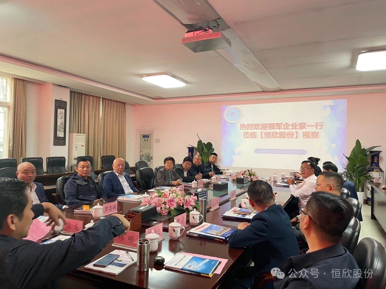 4月13日,来自湖南省内14家优秀企业近20位企业家们莅临【恒欣股份】,开展以“互看互学,共同发展”为主题的管理交流活动。【恒欣股份】董事长肖公平、副董事长肖连平、总经理肖龙武共同接待了湖南领军企业家一行。