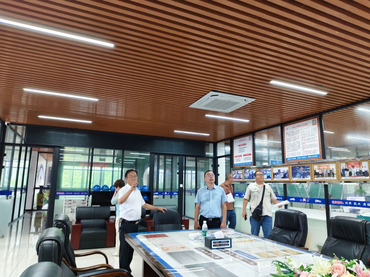 肖董事长引导调研组参观了公司荣誉展厅、无人驾驶试验区、装配车间、数字化生产车间及工业互联网智能管控平台。参观中,肖董事长详细介绍了公司智能化技术应用成果及效益。