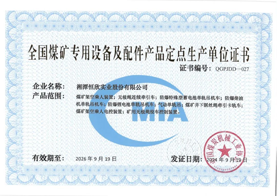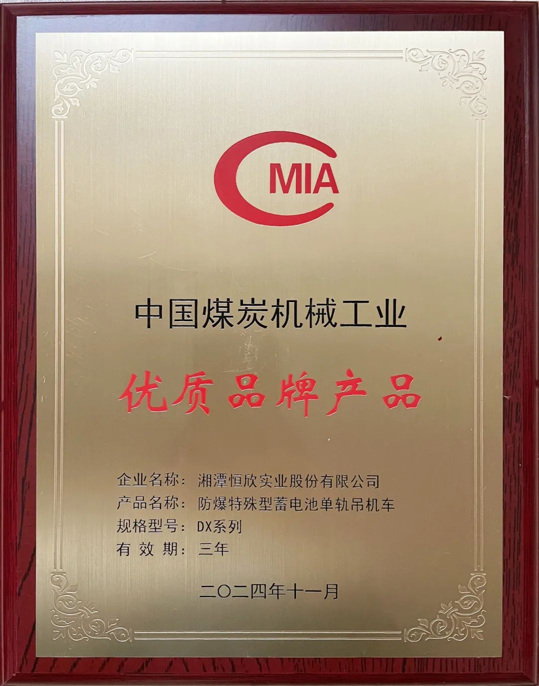 【恒欣股份】二十多年来一直深耕矿山轨道运输智能装备行业,先后荣获国家专精特新“小巨人”首批重点支持企业、全国市场用户满意标杆企业、第六届湖南省省长质量奖、国家绿色工厂,矿用“猴车”荣获单项冠军产品、矿用单轨吊荣获绿色矿山矿业装备质量金奖。