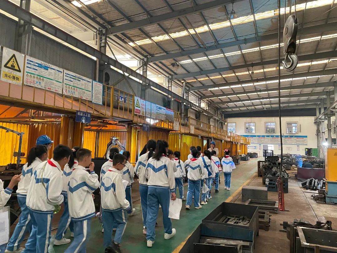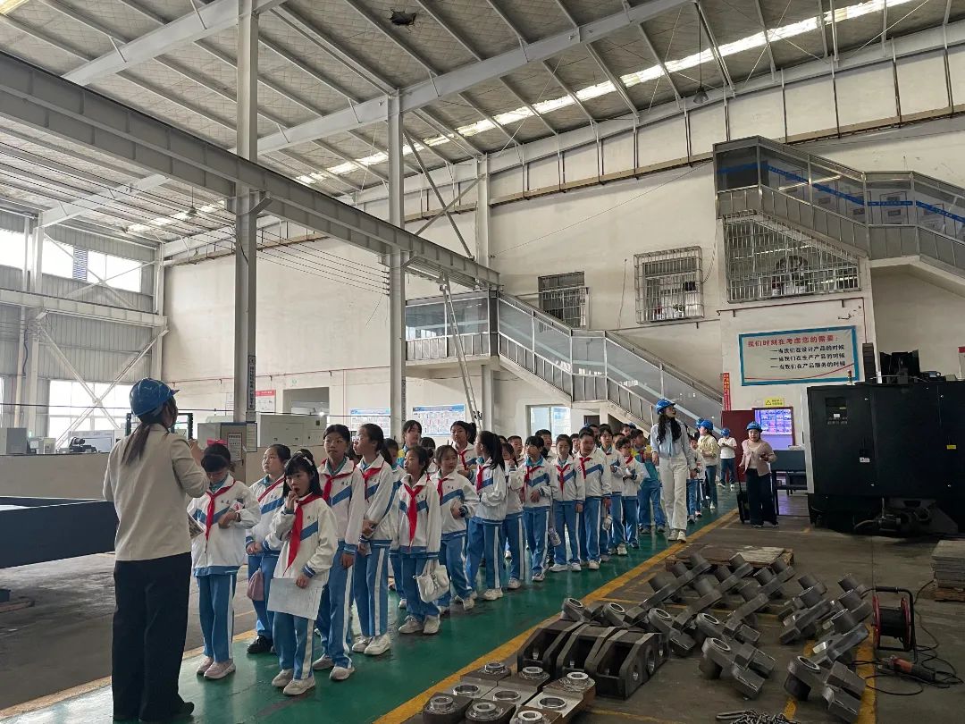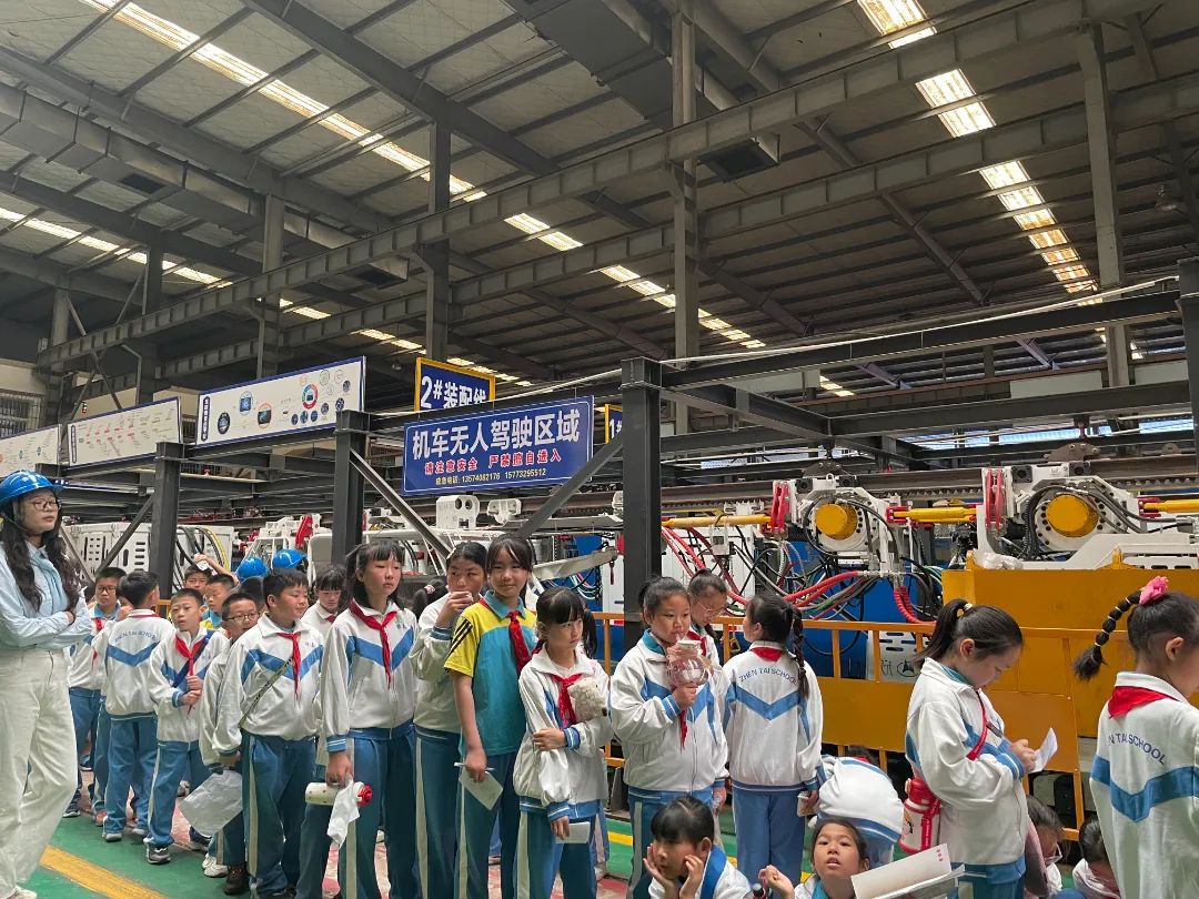 在段总监的陪同下,师生们依次参观了企业荣誉展厅、数控车间、焊接机器人作业区、单轨吊无人驾驶区及物联网中心,段总监全程耐心讲解,让孩子们近距离观察核心产品的生产过程,在焊接机器人工作区,智能机械臂的精准焊接令孩子们惊叹不已;在单轨吊实验区,工作人员现场演示无人驾驶技术,让孩子们直观感受到科技的力量。