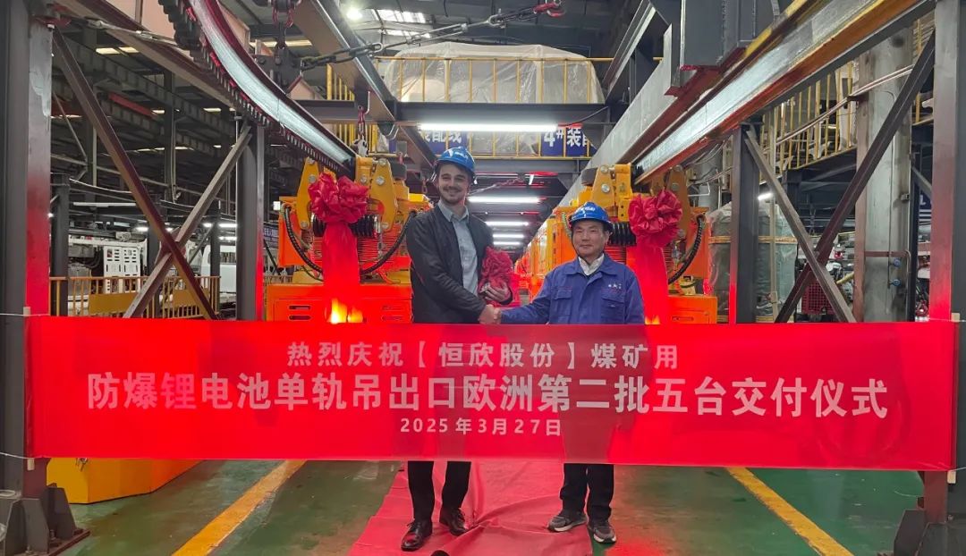 2025年3月26日至29日,欧洲PD Profi公司总经理帕维尔·普拉泽克先生一行4人莅临【恒欣股份】,对即将交付的5套矿用防爆锂电池单轨吊设备,开展现场检测检验及交付工作。此次合作是继2024年首单出口后的再度携手,标志着【恒欣股份】的技术实力、制造能力与产品质量获得国际客户再次的高度认可,为进一步拓展欧洲市场注入强劲动力。