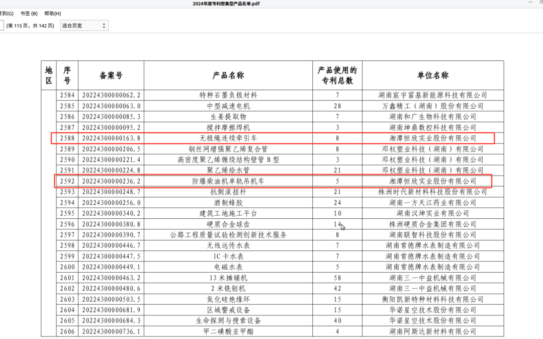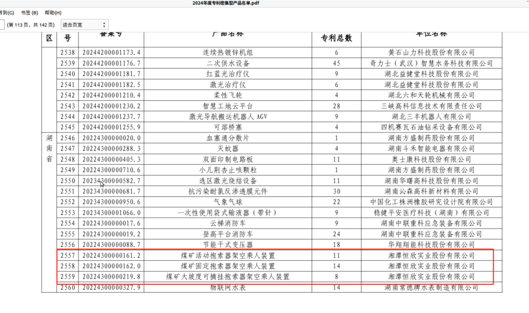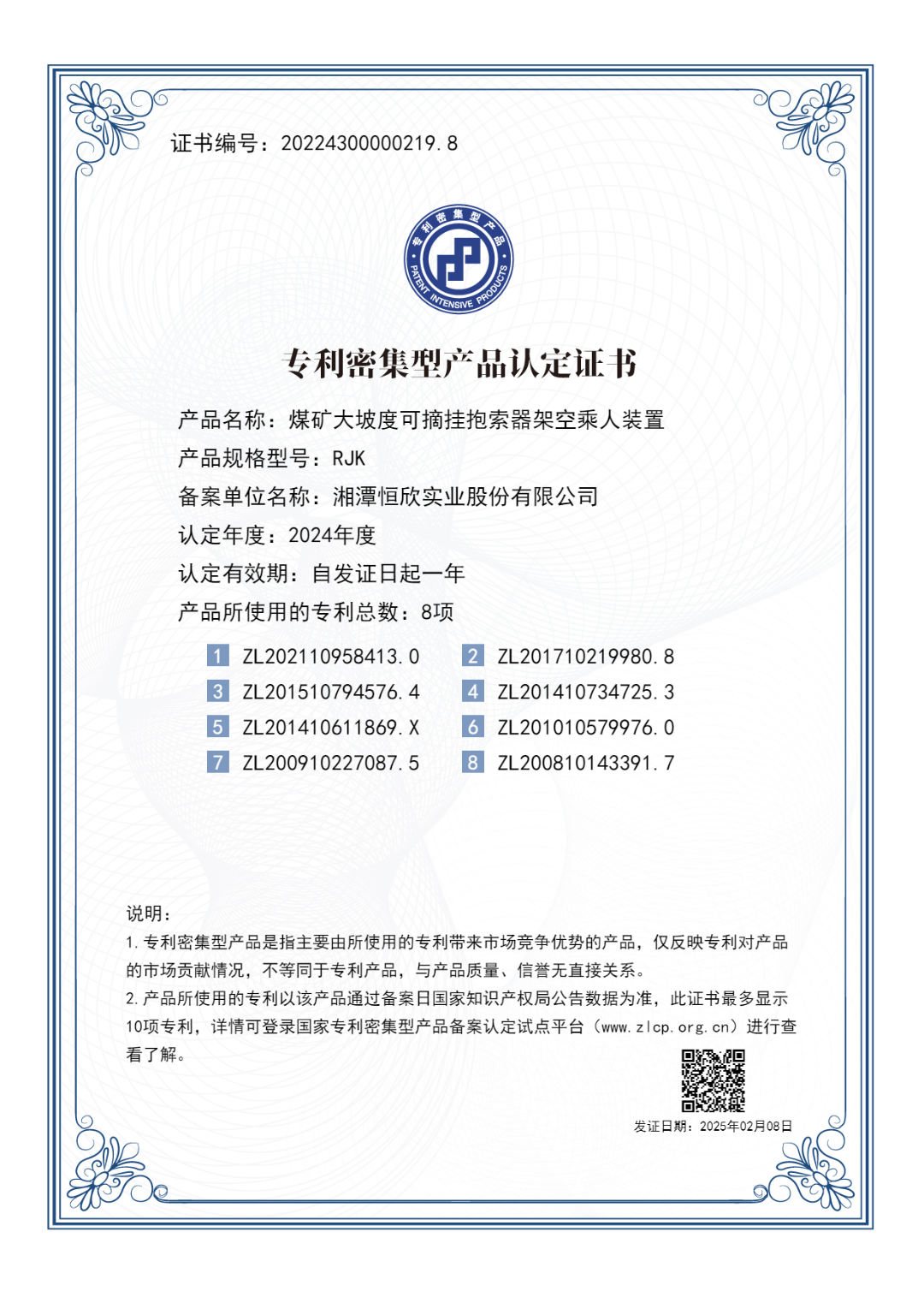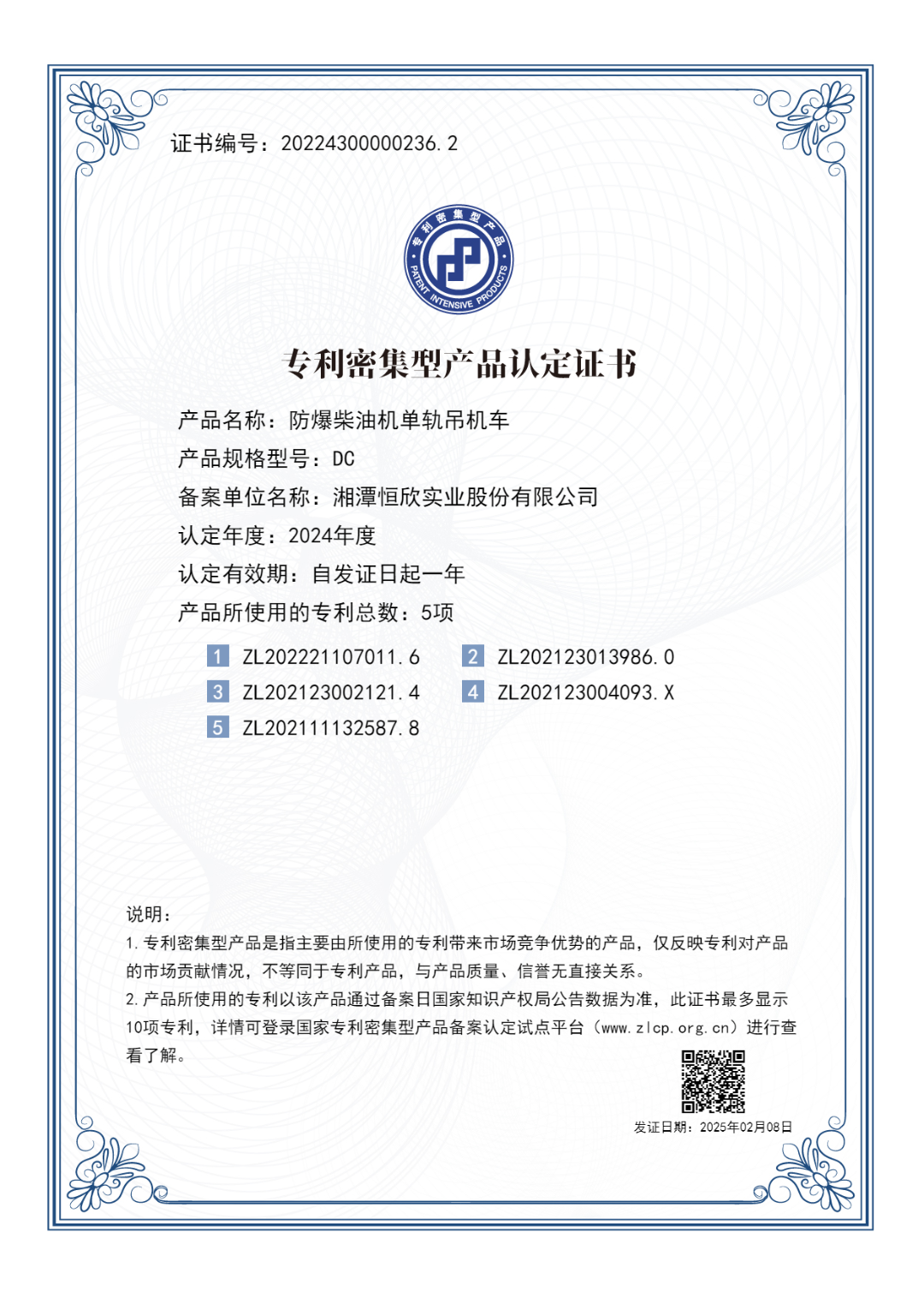 近日,国家专利保护协会公布了2024年度专利密集型产品名单。其中,【恒欣股份】的“煤矿固定抱索器架空乘人装置、煤矿大坡度可摘挂抱索器架空乘人装置、防爆柴油机单轨吊机车、煤矿活动抱索器架空乘人装置、无极绳连续牵引车”等5件产品被认定为专利密集型产品。本次全省共认定专利密集型产品132件,其中湘潭市共有13件入选,韶山市总计6件入选。【恒欣股份】凭借5件入选产品,在湘潭市中占比38.5%,在韶山市中占比高达83%。这一成绩充分展现了【恒欣股份】在知识产权建设方面的强劲实力。