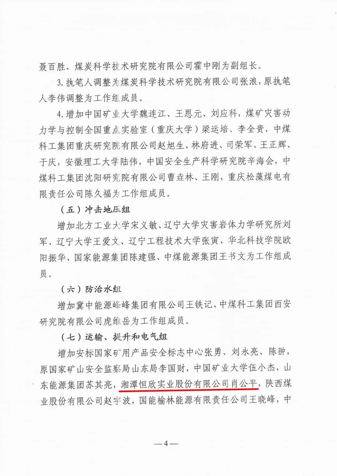 【恒欣股份】作为矿山井下智能运输装备领域的领军企业,积极参与此次规程修订工作。公司董事长、正高级工程师肖公平受邀参与《规程》与《解读》的修订,并在修订过程中提出“架空乘人装置应加装防反转保护”的重要建议,该建议已被采纳并写入新规,为提升矿山装备安全性能与行业技术水平贡献了专业力量。
