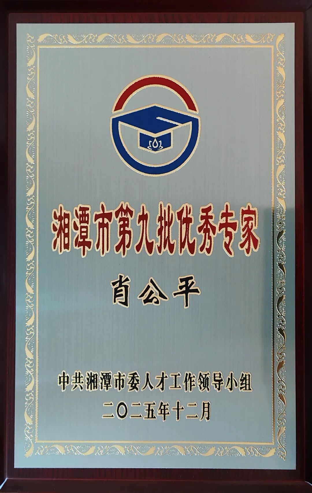 祝贺我司董事长、首席专家肖公平先生获“湘潭市第九批优秀专家”称号。