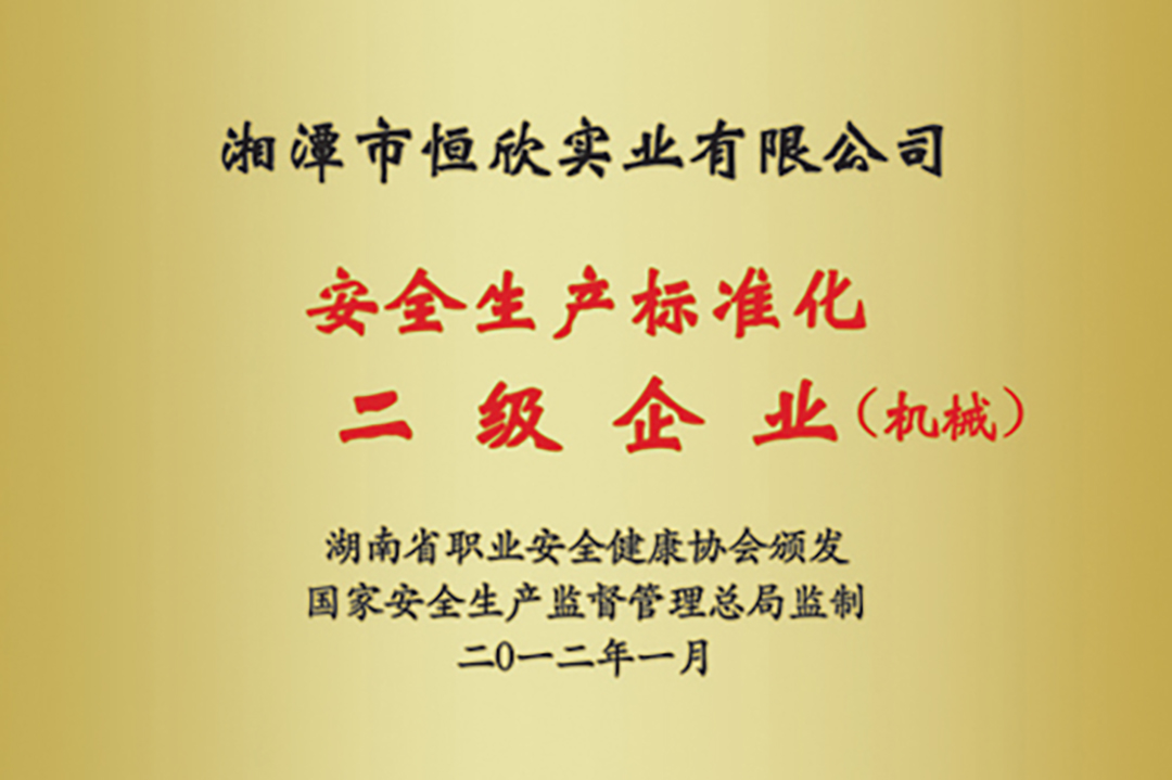 热烈庆祝“湘潭恒欣”被评为湖南省安全生产标准化二级达标企业