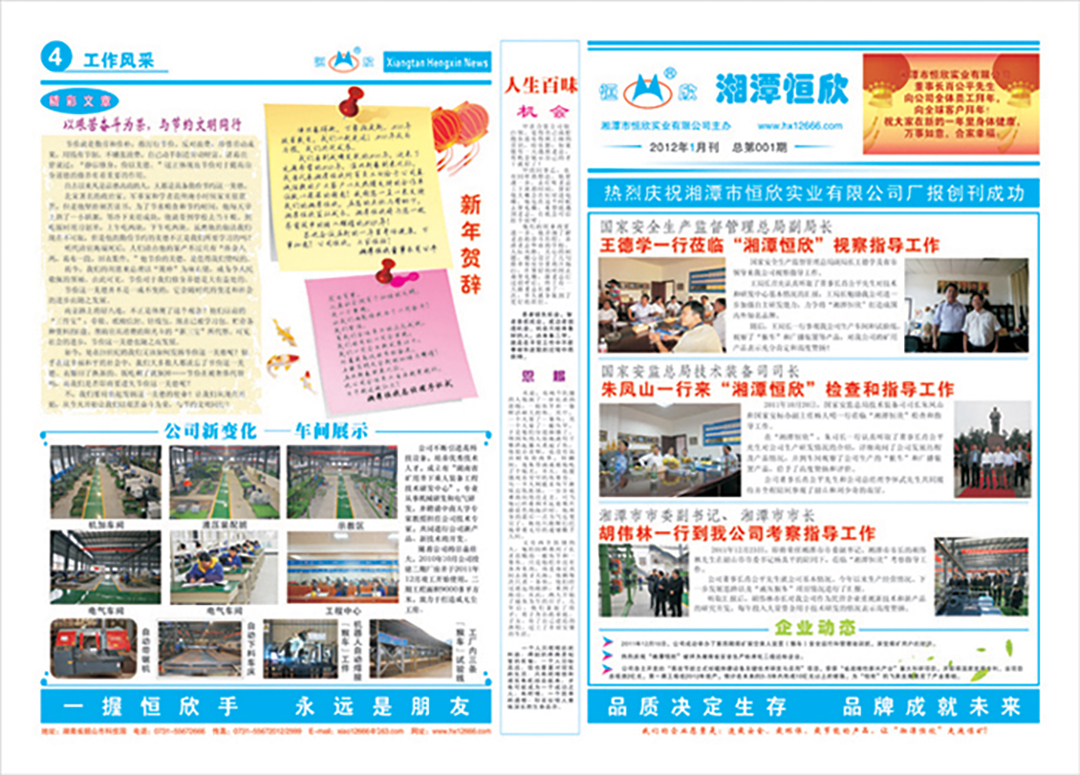 热烈庆祝湘潭市恒欣实业有限公司厂报创刊成功