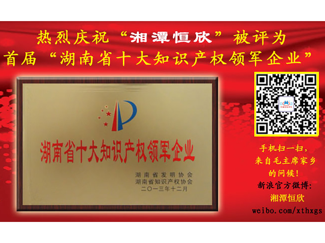 热烈庆祝“湘潭恒欣”被评为“首届湖南省十大知识产权领军企业”