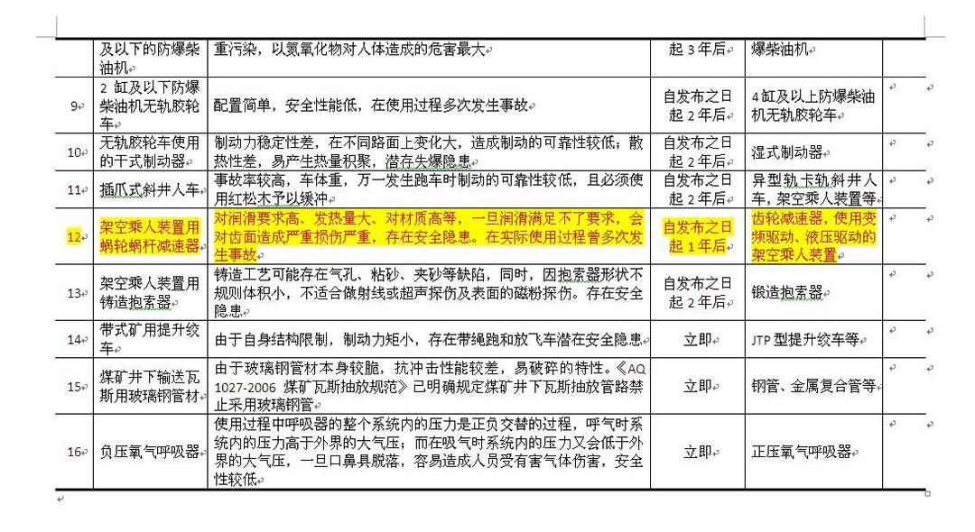 “架空乘人装置用蜗轮蜗杆减速器”拟列入《禁止井工煤矿使用的设备及工艺目录(第四批)》中