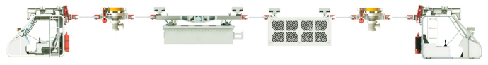 防爆特殊型蓄电池单轨吊机车(异步电机)主要由驾驶室、异步机驱动部、电液控制车(含液压系统、电气控制系统及安全保护)、电源装置(含铅酸电池)、速度保护小车、承载小车、拉杆、起吊梁等组成。
