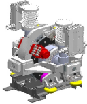 主要 由变频调速一体机 、行星减速机 、工作制动器(配备减速机内置湿式制动器及作用在驱动轮 的盘式制动器)、驱动轮 、编码器测速装置 、离心限速装置 、驱动支架 、车轮摆架 、卡轨轮 、导向轮等组成 , 单个驱 动 单 元 的驱 动 力 :22 kW变频 调速 一体机 的牵 引力 为60kN,45kW变频调速一体机的牵 引力为135kN。