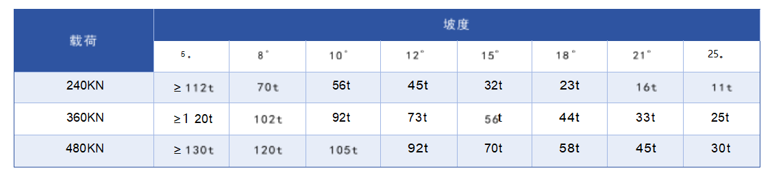 防爆特殊型铅酸蓄电池齿轨卡轨车(永磁变频一体机)负载对照表(单位:t)