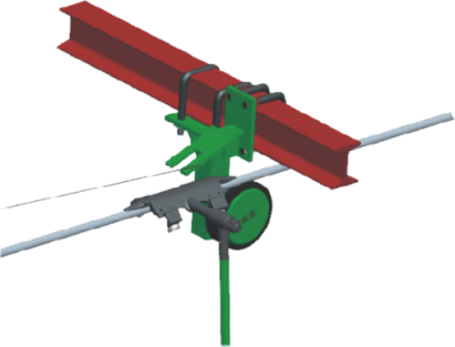 利用斜楔滑块夹紧原理,以防爆推动器为动力,对进出驱动轮的钢丝绳进行制动,且制动有效率100%。当猴车发生两级制动装置失效、牵引钢丝绳打滑、驱动主轴断裂或驱动轮掉落时,可能会发生严重的飞车事故,通过钢丝绳制动器对牵引钢丝绳制动,能有效的防止事故的发生。