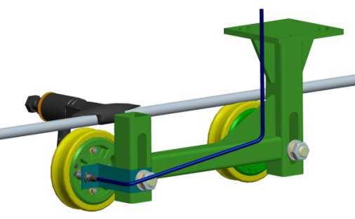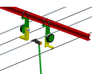 在托轮的下方全线路上设置一根钢丝绳,当吊椅发生左右摆动时,钢丝绳将吊椅挡回去,防止吊椅摆动至托绳轮处被其挡住发生向上翻转事故。