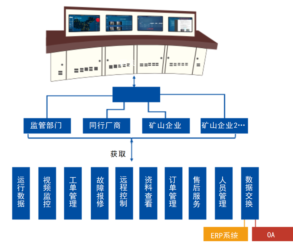平台用于对矿用矿山轨道运输智能装备进行实时监控、运行预报警、远程智能故障诊断以及数字运维服务等,并通过工业APP实时调度设备运维服务人员,及时处理设备故障,以提升矿山轨道运输智能装备的安全运维保障。
