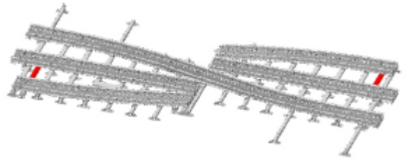 水平弯轨5°(R8594)和7.5°(R8594)主要用于水平转弯 、车场 、岔口。