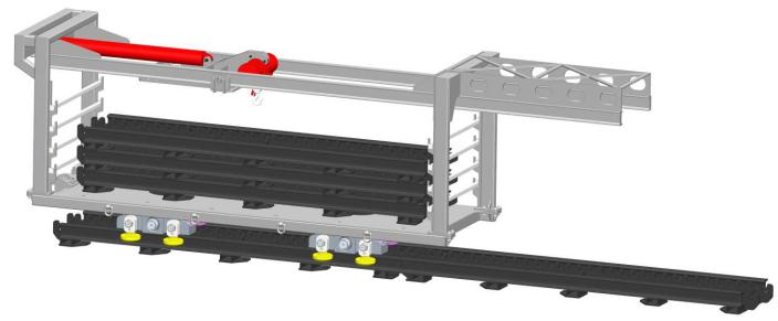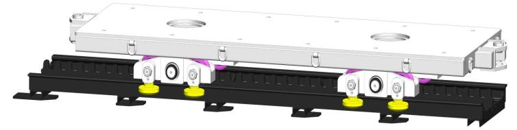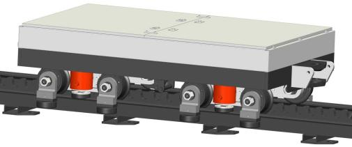 在每个驱动部卡轨装置设计对轨道制动装置 ,用于机车上坡溜车和机车下坡飞车时的紧急制动 。制动力满足牵引力1.5~2.0倍要求 ,对轨制动器的制动力直接作用在两侧轨道上,制动停车安全可靠。