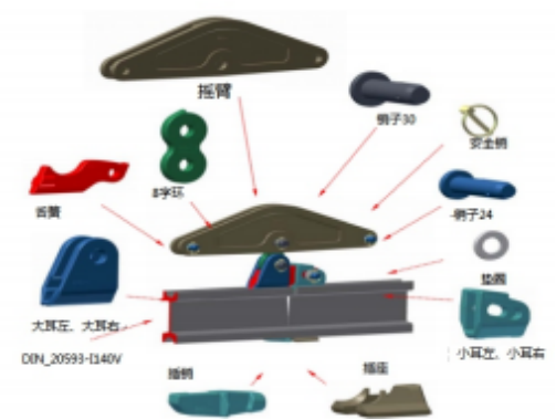 道岔应用于单轨吊轨道分道,其分为左开道岔、右开道岔、双开道岔(对称道岔)。