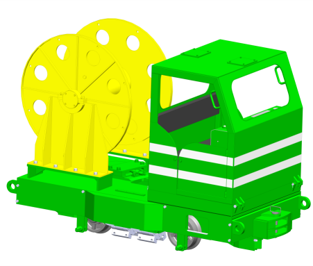 梭车用来连接矿车、平板车、材料车等,并具有固定和储存钢丝绳的功能。主要由车架、储绳筒、车轮组件等组成。主要用于小坡度或平巷。
