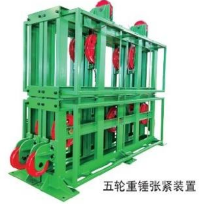 重锤张紧:具有吸收钢丝绳量大、能力强、维护工作量小、适应轨道起伏、动作反应迅速等特点。