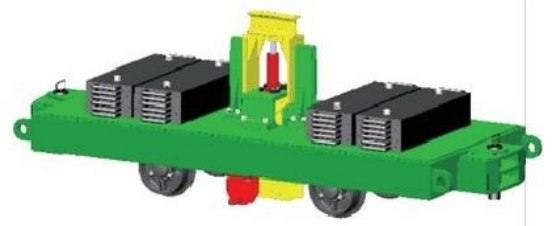 普轨卡轨车是一种以钢丝绳牵引适应普通轨道上全程卡轨运行的轨道运输装备,适用于长距离、大倾角、多弯道起伏巷阴阳轨等不同工况条件下的材料、设备不转载运输,同时,还可用于人员上下井的运输。