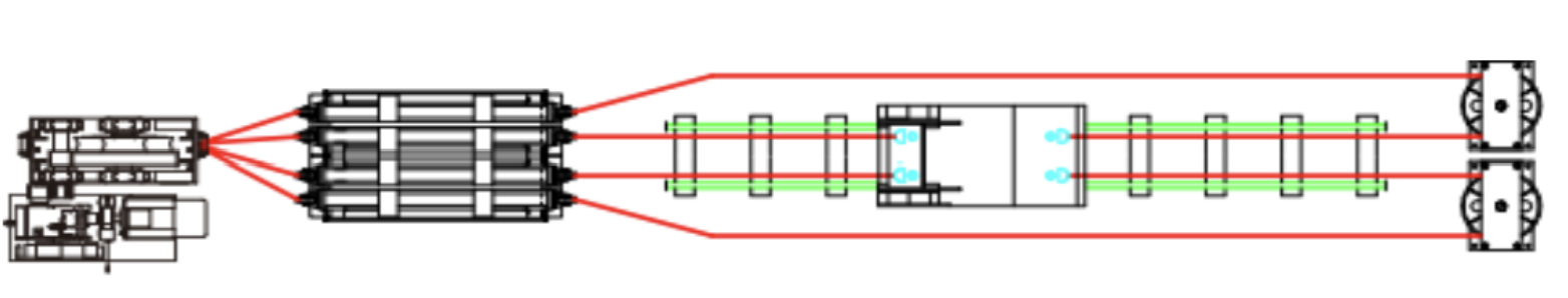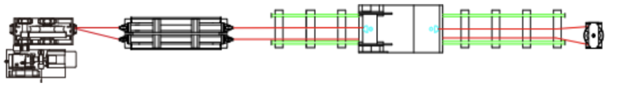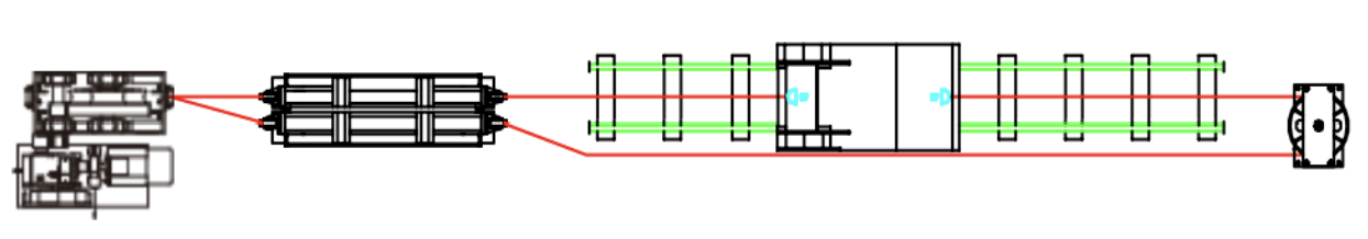 无极绳运输系统为了吸收由于弹性变形而伸长的钢丝绳,必须配置张紧装置保证钢丝绳有一定的初张力。张紧装置分为重锤张紧装置和卧式液压张紧。